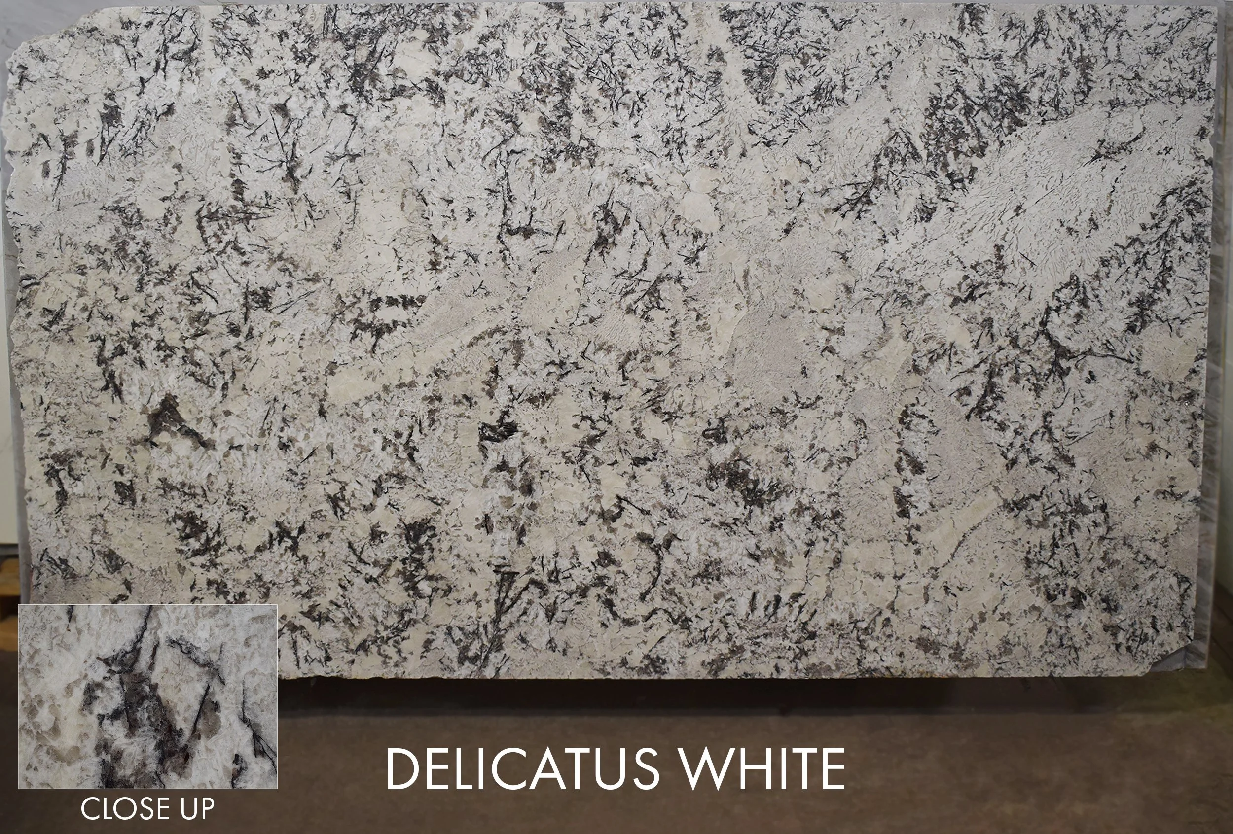 View fullsize Delicatus WhiteMaterial: GraniteLot Number: VIT032822-BApprox. Size: 124x75x3Finish: PolishedOrigin: Brazil